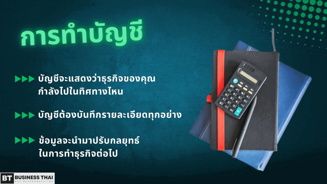บัญชีจะเป็นตัวชี้วัดว่าธุรกิจของคุณกำลังไปในทิศทางไหน และการทำบัญชีจะต้องลงรายละเอียดทั้งหมดเพื่อให้ได้ข้อมูลจริงมาปรับกลยุทธ์ของธุรกิจต่อไป