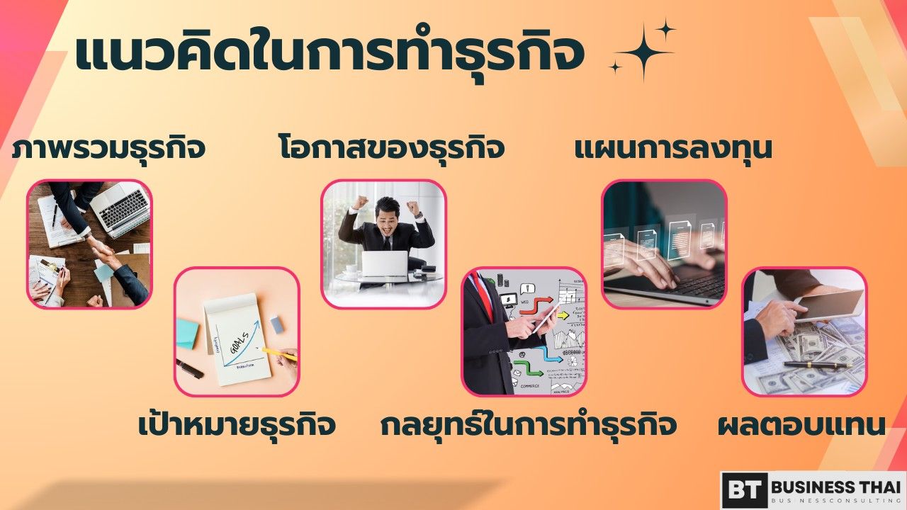 ในส่วนของแนวคิดในการทำธุรกิจจะต้องระบุทั้งภาพรวมของธุรกิจ เป้าหมาย โอกาสที่มองเห็น กลยุทธ์ในการดำเนินงาน แผนการลงทุน และจะต้องคาดการณ์ผลตอบแทนที่น่าจะได้รับในอนาคตด้วย