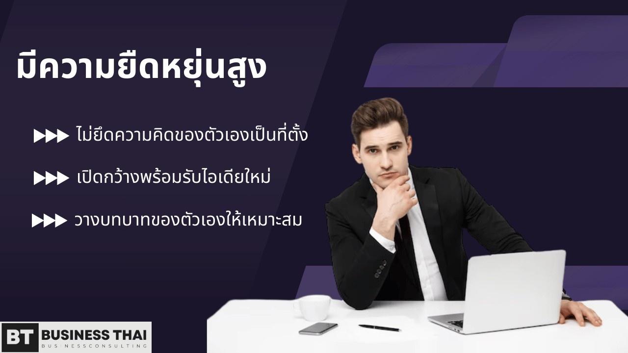 การเป็นผู้จัดการที่ดีจะต้องมีความยืดหยุ่นทั้งด้านทักษะและจิตใจ ต้องเปิดรับความคิดใหม่ ๆ โดยไม่เอาความคิดของตัวเองเป็นที่ตั้ง และจะต้องปรับบทบาทของตัวเองให้เหมาะสมว่าในงานไหนสมควรทำอะไรบ้าง