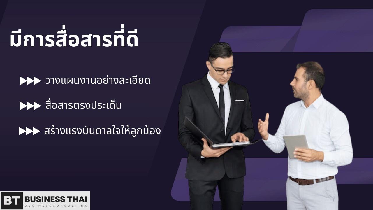 การสื่อสารที่ดีจะต้องตรงประเด็น ไม่พูดจาเรื่อยเปื่อย ในการวางแผนงานก็ต้องละเอียดรอบคอบ รวมถึงจะต้องรู้จักพูดเพื่อสร้างแรงบันดาลใจให้กับลูกน้องด้วย
